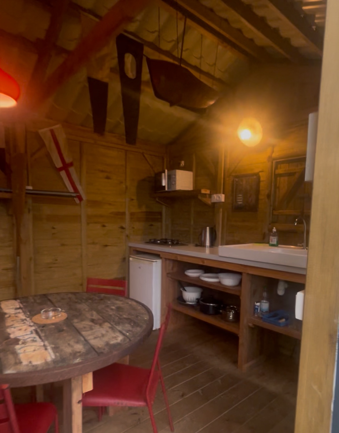 L’Abri Marin est un espace commun à tous les RandoBoats. Vous y trouverez une cuisine équipée avec un évier, un réfrigérateur, un micro-ondes, des plaques de cuisson et la vaisselle. Vous pourrez y préparer vos repas. La zone réservée aux RandoBoats dispose également de table de pique-nique en accès libre. Vous pourrez y partager un moment de convivialité en compagnie d’autres randonneurs.
