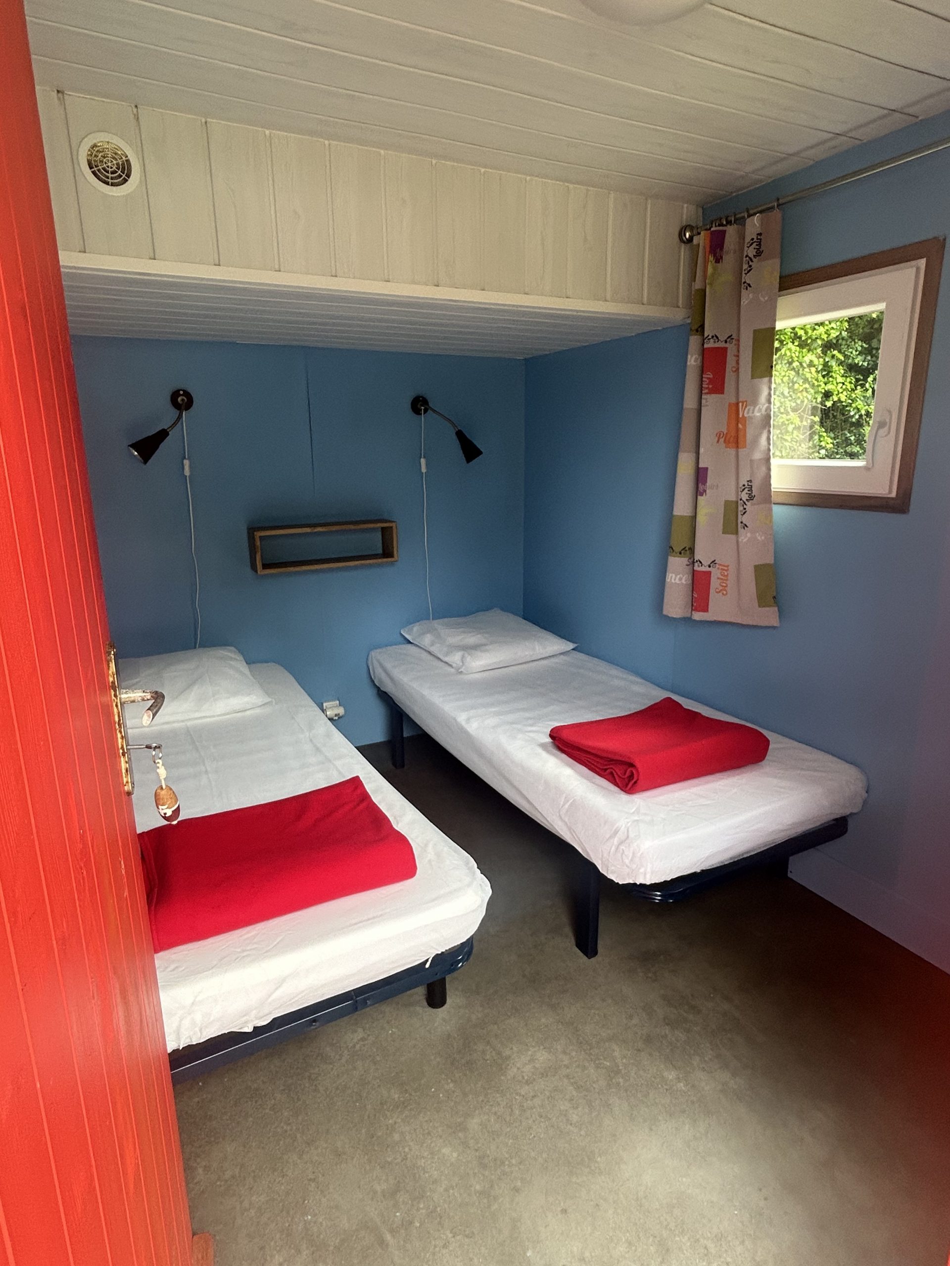 Ces RandoBoats sont constitués d’une chambre avec deux lits jumeaux (80 x 190 cm) et des branchements électriques pour recharger les batteries après un journée de marche et d’une terrasse avec une table et deux chaises. Ces hébergements ne disposent pas de salle de bain. Les personnes séjournant dans nos RandoBoats ont accès aux sanitaires du camping. Nos RandoBoats sont donc la parfaite alternative à ceux qui aiment camper, mais cherchent un petit supplément de confort.